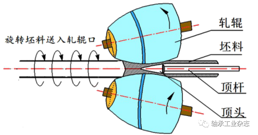 我们注意到,由于碳化物相的硬脆特性,其对扭转和剪切变形更加敏感。如果能够在轴承钢热加工过程中,通过明显增加扭转变形分量,并与适当的热处理过程配合,将获得更好的碳化物破碎和均匀分布的改性效果。目前的碳化物调控技术研究大多是基于传统轧制方法开展的。应该指出,目前的轧制方法,纵轧从本质上讲属于二维变形过程,基本不发生扭转或剪切变形。斜轧虽然有扭转,但扭转变形量明显不足,不能达到理想的碳化物破碎效果。因此,西工大刘东团队基于压扭复合变形的基本原理,提出了PTR改性技术的基本思路,分别研发了棒材、管材和盘件PTR改性技术的工艺和装备。其中,管材PTR改性的技术原理示于图1。